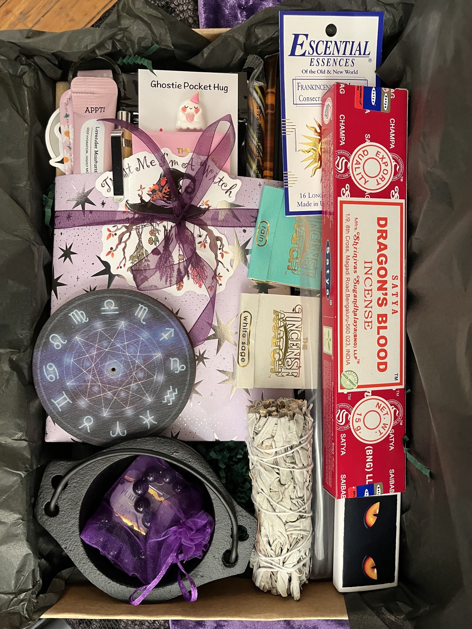 PRODUCT LISTING: Blind Date With a Book, 3inch Cauldron, Bracelet in a Bag, Insence Holder, Smudge Stick, Satya Insence, Essential Essence, Insence Matches, Matches, Ash Catcher